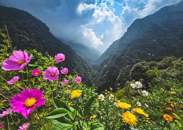 Summer overlaps with the monsoon season, bringing frequent rain, cloud cover, and slippery trails. Landslides and leech-infested paths are common, making this a challenging time to trek.