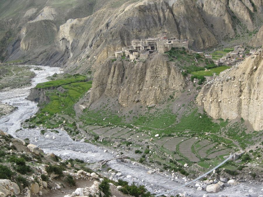 We start our trek early in the morning, as there is a lot of distance to cover on this first day. We cross the river and enter the Nar & Phu valleys where you will see old, under-developed towns on the nearby Annapurna Circuit. The route passes through beautiful woods, past small cave shelters and pilgrims’ resting places. Emerging from a narrow canyon, the trail passes under a wide waterfall, from which point the woods become thinner and the vistas wider. The last stretch into Meta involves climbing a steep hill, where you will be rewarded with amazing views of some of the giant snowy peaks in the area. Meta lies on a big open plain and consists of a few lodges, where we will stay overnight.