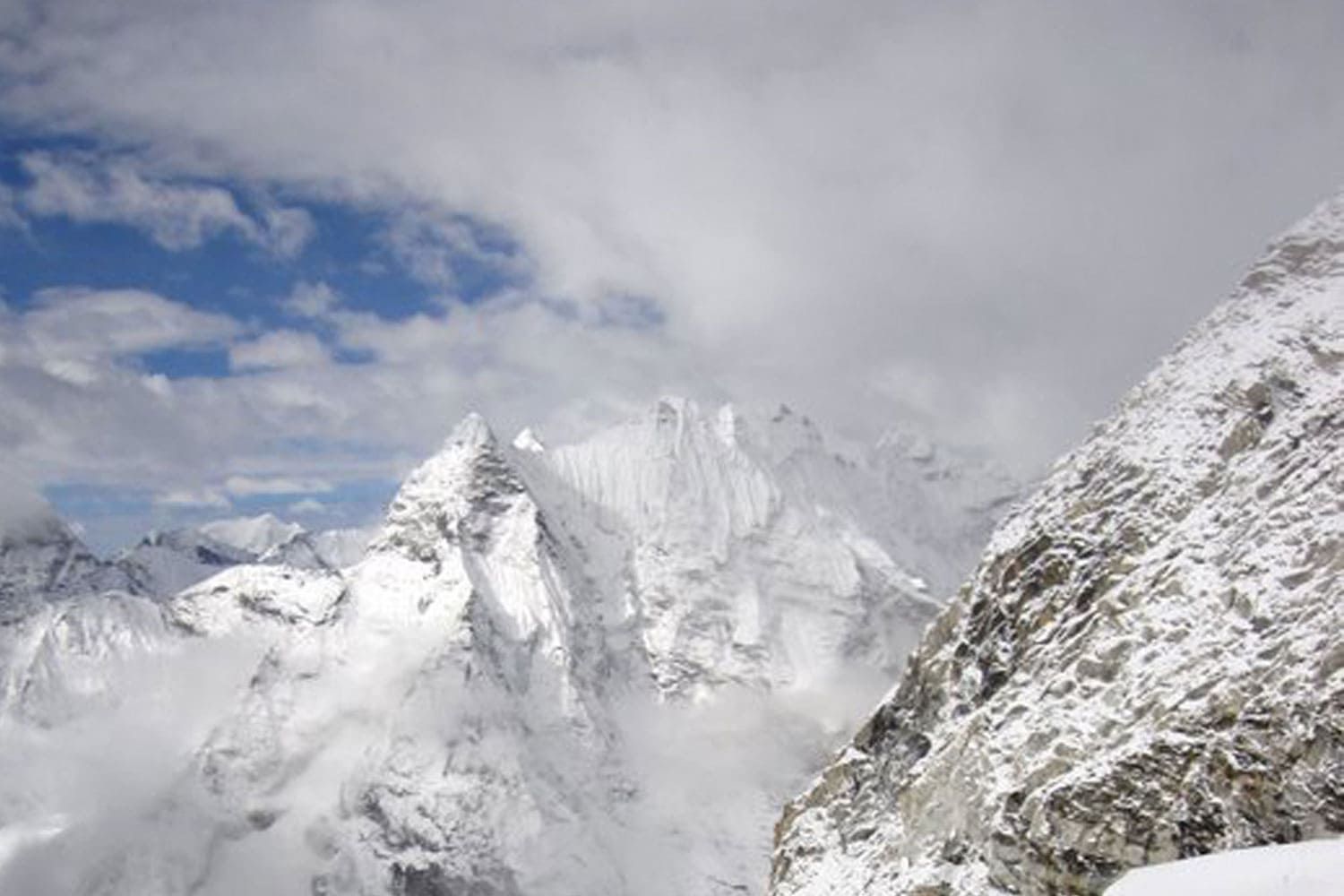 The extension of this ridge descending south-west is the part of the normal route leads to the South Summit. From the summit of this interesting Peak, all the giant mountains of Everest region; which includes Nuptse (7,879m), Lhotse (8,501m), Lhotse Middle Peak and Lhotse Shar can be vividly seen.